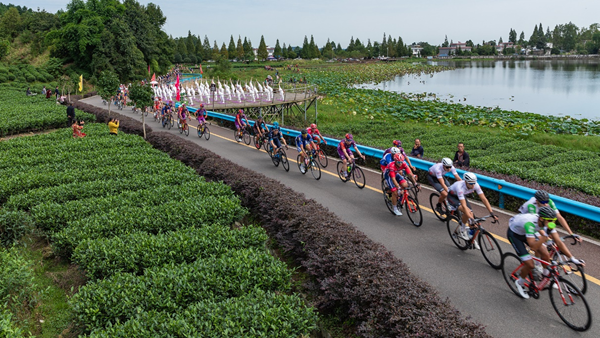 自行车比赛办到了茶园绿道上,运动员在比赛中尽情享受生态环境的美好