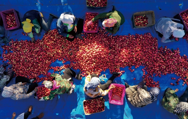 科尔沁左翼后旗积极发展特色林果产业,农牧民收入不断增加。图为农民包装“塞外红”苹果