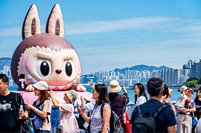 2025年10月25日,“维港海上大巡游”活动亮相中国香港金钟添马公园海滨,“Labubu”巨型海上充气雕塑成为市民与游客争相“打卡”之处