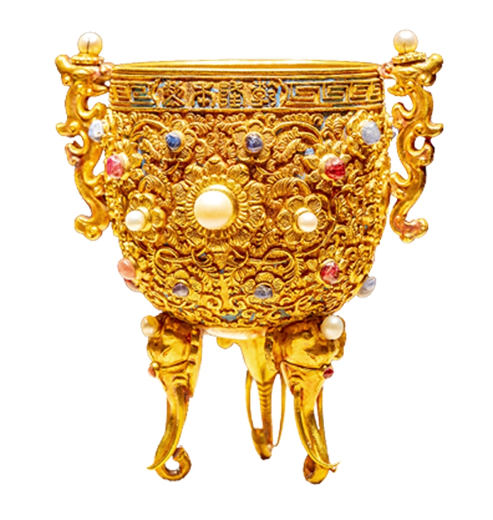 在“百年守护—从紫禁城到故宫博物院”展览中展出的金瓯永固杯