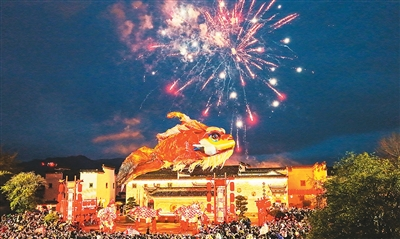 在第十五届全运会开幕式上,一尾巨型鳌鱼惊艳亮相,火遍全网。这一精彩场景,为唐模景区春节活动策划带来了全新灵感。“飞天鳌鱼气势恢宏,徽州鱼灯灵动雅致,二者相得益彰,正好能打造独属于唐模的民俗盛景。”黄山市徽州唐模旅游发展有限公司相关负责人戴斌介绍,景区以此为核心创意,精心打造了全时段沉浸式文旅活动:白天,巡游祈福、音乐戏剧轮番上演;夜晚,鳌鱼飞天、鱼灯巡游、打铁花、烟花秀等点亮夜空。从早到晚,十余项互动式体验活动让游客应接不暇,沉浸其中感受民俗魅力与古村韵味。