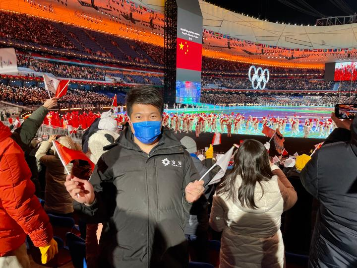 2月4日,台湾教师陈文成在“鸟巢”观看北京冬奥会开幕式。受访者供图