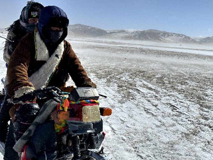 摩托车是“喜马拉雅生灵的朋友”团队在荒野上工作时兼具环保和便功能的交通工具