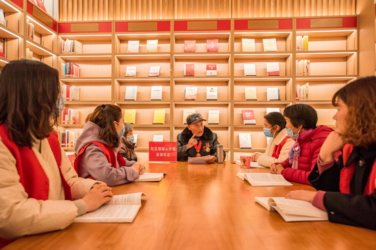 龙亭书苑内的耄耋社区领读人。(肖本祥摄)
