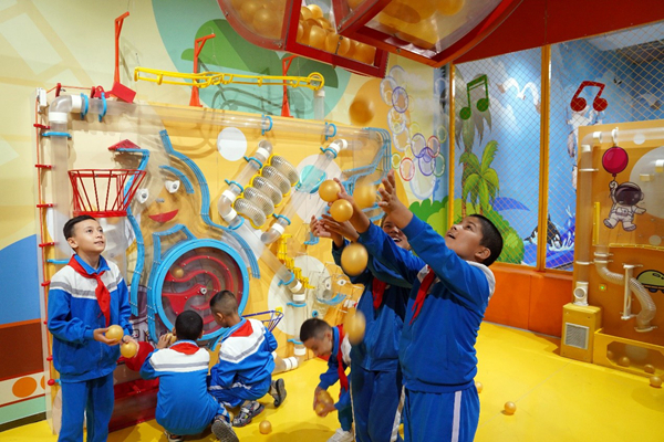 “童心探梦”展厅围绕儿童成长需求,采用游戏化、探索式互动参与为主的多样化展教方式,将科学原理融入游乐设施,寓教于乐