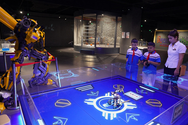儿童体感机器人竞技乐园让孩子们近距离感受AI技术和游戏场景融合打造的炫酷效果