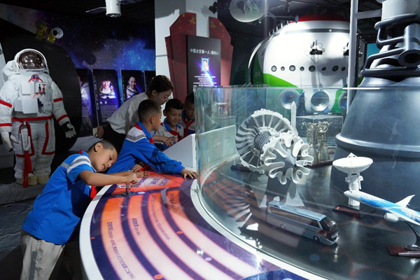 同学们在老师的讲解下,了解涡轮风扇发动机的工作机制和应用场景,各种模型集中展示了日益强大的中国航天
