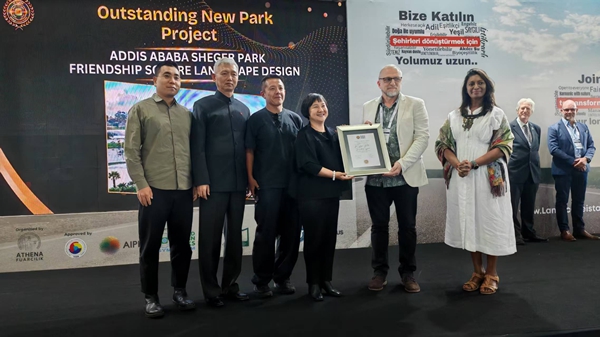 当地时间10月10日,2025年“世界城市公园组织”研讨会在土耳其伊斯坦布尔圆满落幕。中国设计师谢晓英领衔设计的埃塞俄比亚亚的斯亚贝巴谢格尔公园友谊广场景观项目,荣获由世界城市公园组织颁发的 “杰出新公园项目奖”。这一奖项不仅标志着中国在全球绿色城市发展与“一带一路”倡议框架下的又一重要成就,也彰显了中国在国际城市景观设计领域的突出贡献。