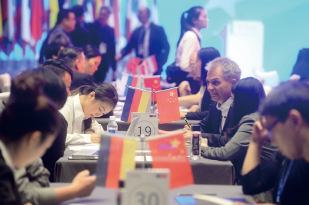 2018年9月20日,四川省成都市,第十七届中国西部国际博览会开幕。图为嘉宾们正在洽谈