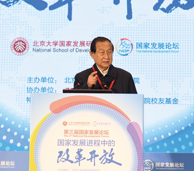 2018年12月15日,北京大学国家发展研究院第三届国家发展论坛举行。图为高尚全在论坛上发表演讲