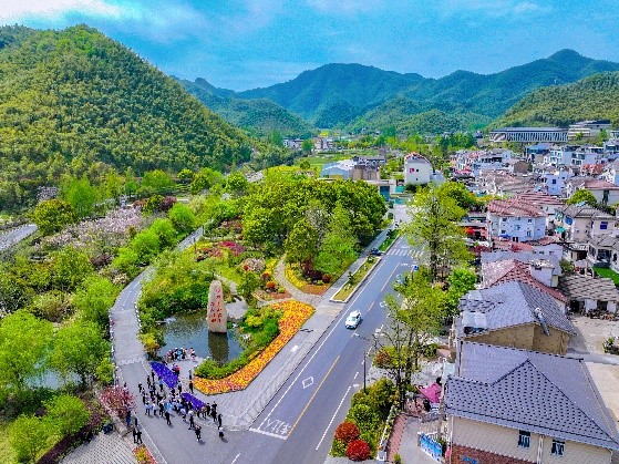 2025年4月7日,浙江省湖州市安吉县天荒坪镇余村,群山苍翠,竹海绵绵与错落有致的民居交相辉映,构成一幅美丽乡村生态画卷