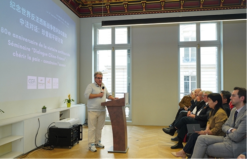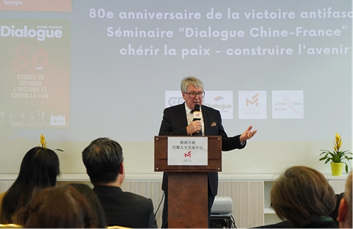 9月27日,纪念反法西斯战争胜利80周年——中法对话:珍爱和平研讨会在法国巴黎举办。中国外文局西欧与非洲传播中心(今日中国杂志社)主任赵丽君、中国驻法国大使馆公使衔参赞王健,法国旺代天主教学院政治学系主任、国际关系学教授马蒂厄·格朗皮龙、法国扎菲尔欧亚合作促进会会长、地缘政治学者让·佩古雷(贝文江),法国和平运动组织副主席伊夫-让·卡拉斯,法国国家科学研究中心研究员、经济学家雷米·赫雷拉,巴黎法中友好协会副主席利亚齐德·本哈米等来自中国和法国的50余位高校、智库、非政府组织和媒体的代表参加本次研讨会。