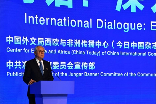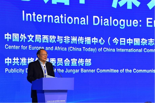 中国外文局西欧与非洲传播中心(今日中国杂志社)主任赵丽君,清华大学新华国际传播研究院副院长张铮,黄河水利委员会黄河水利科学研究院原副院长姚文艺,准格尔旗委常委、宣传部部长韩燕出席开幕式并致辞。联合国前副秘书长兼环境规划署执行主任埃里克·索尔海姆通过视频致辞。
