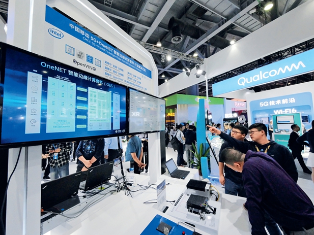 Área de exhibición de productos Intel 5G en el marco de China Mobile Global de 2019.