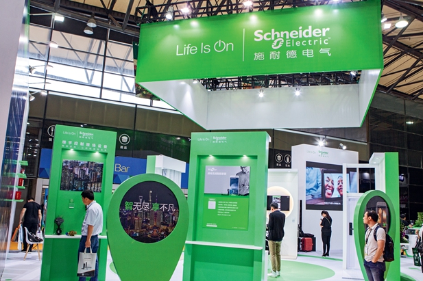 4 de septiembre de 2019. El stand de Schneider Electric en la 17.a Exposición Internacional de Semiconductores de China en Shanghai.