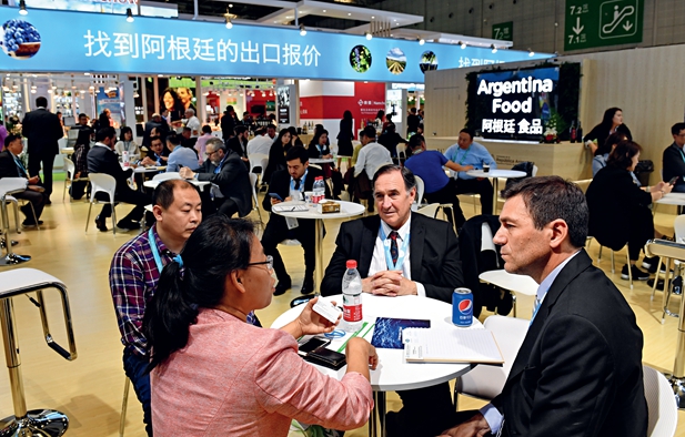 6 de noviembre de 2019. Representantes de empresas de China y Argentina conversan sobre el sector de alimentos y productos agrícolas en la segunda Exposición Internacional de Importaciones de China, en Shanghai. VCG