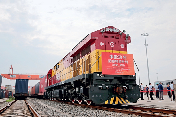 12 de agosto de 2020. El tren Xi’an-Milán, con 368.300 mascarillas y 94,9 toneladas de suministros antiepidémicos, parte de la Estación de Xinzhu. Cnsphoto