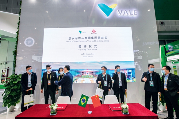 10 de diciembre de 2020. El stand de la empresa brasileña Vale en una de las áreas de exhibición de la tercera Exposición Internacional de Importaciones de China, en Shanghai. VCG