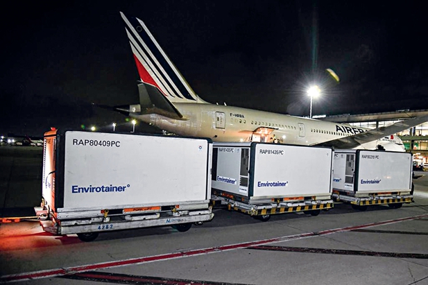 11 de abril de 2021. Llega a Bogotá un nuevo lote de 500.000 dosis de la vacuna contra el COVID-19 desarrollada por la farmacéutica Sinovac. Xinhua