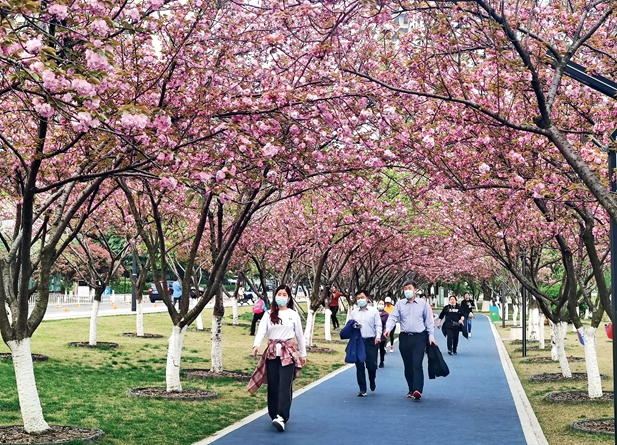 26 de marzo de 2021. Ciudadanos de Wuhan pasean bajo los árboles de cerezo (sakura), en plena floración. Cnsphoto