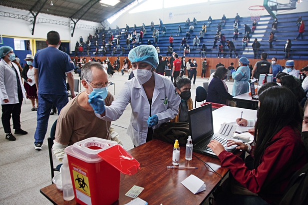 12 de julio de 2021. Campaña de vacunación con los inmunizantes de la farmacéutica china Sinovac en la ciudad de Cuenca, en Ecuador. Visual People