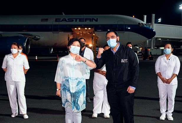 Entonces, cuando me pregunta cuál fue la clave para esta pronta respuesta de China, pues fue evidentemente por las buenas relaciones que tenemos. Por ejemplo, El Salvador tiene dos países vecinos, que son Guatemala y Honduras. Cuando nosotros teníamos ya funcionando nuestro esquema de vacunación, ellos no tenían acceso pero ni a una vacuna.