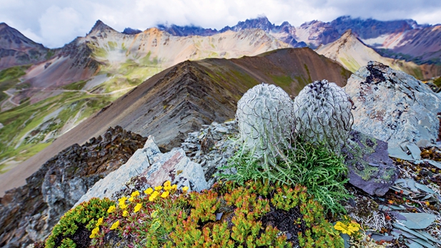 Flores congeladas (saussurea leucoma diels) en lo alto de las montañas.