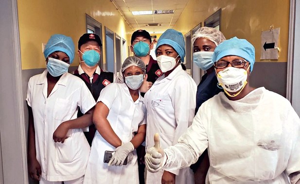 26 de mayo de 2020. Especialistas chinos en el combate al COVID-19 se toman una foto con trabajadoras de la salud congoleñas en Brazzaville, capital de la República del Congo. Xinhua