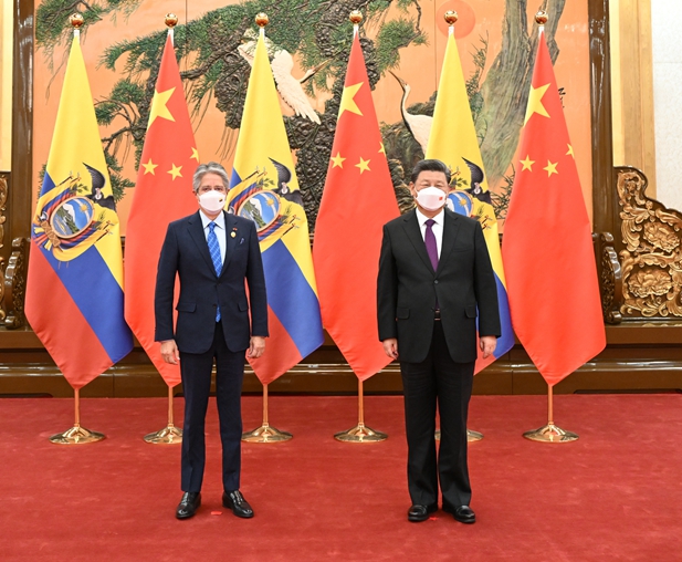 5 de febrero de 2022. El presidente chino, Xi Jinping, se reúne con su homólogo ecuatoriano, Guillermo Lasso, en el Gran Palacio del Pueblo, en Beijing.