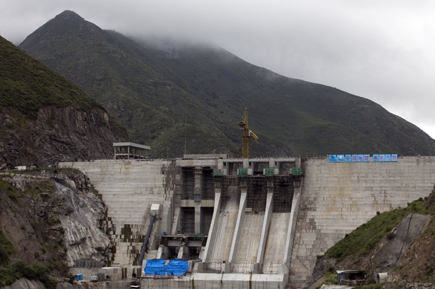 13 de abril de 2017. El dique de la Central Hidroeléctrica Minas San Francisco, construida por la empresa china Sinohydro Engineering Bureau 8, en la provincia de Azuay, Ecuador.