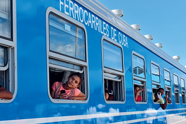 13 de julio de 2019. Un tren de pasajeros diseñado y producido por China sale de la Estación Central de La Habana, Cuba.
