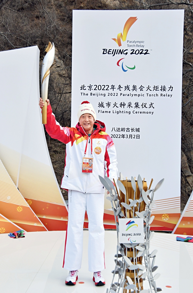 2 de marzo de 2022. Xia Boyu, el primer portador de la antorcha paralímpica en la Gran Muralla. Fotos ofrecidas por Xia Boyu