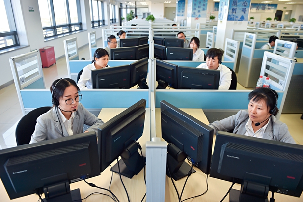 13 de noviembre de 2019. Trabajadores responden llamadas a través de la línea de atención para ciudadanos 12345 en Yizhuang, en Beijing. Fotos de Xinhua