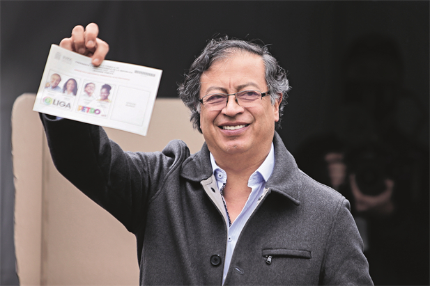 19 de junio de 2022. Gustavo Petro sufraga en un local de votación en Bogotá, capital de Colombia.