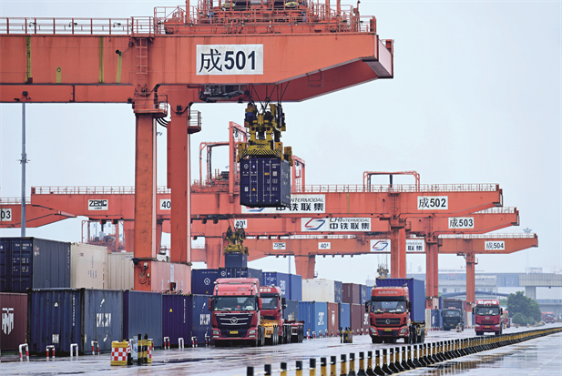 27 de mayo de 2022. Contenedores de fertilizantes que serán exportados a Brasil en el puerto ferroviario internacional de Chengdu. Fotos de Xinhua