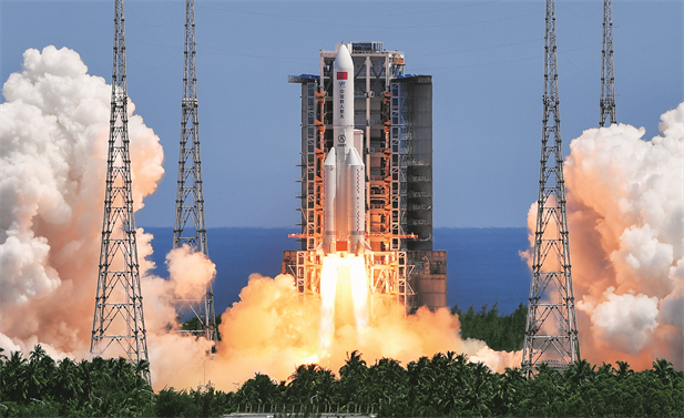 24 de julio de 2022. Un cohete portador Gran Marcha-5B Y3, con el módulo de laboratorio Wentian a bordo, despega del Sitio de Lanzamiento de Naves Espaciales de Wenchang, en la provincia de Hainan. Xinhua