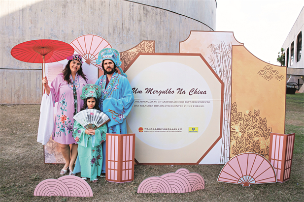 13 de agosto de 2022. Una familia brasileña viste trajes tradicionales chinos en el evento “Una inmersión en China” en el Centro Cultural Banco de Brasil, con motivo del 48.º aniversario del establecimiento de relaciones diplomáticas entre China y Brasil. Xinhua