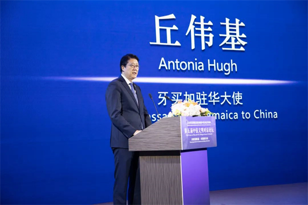 En su discurso, Antonia Hugh, embajador de Jamaica en China, expresó sus felicitaciones por el 50.º aniversario del establecimiento de relaciones diplomáticas entre China y Jamaica, destacó la Iniciativa para el Desarrollo Global y consideró que muchos de los temas incluidos en ella eran muy compatibles con los problemas de desarrollo que enfrenta Jamaica. “China es un gran país y ha alcanzado logros notables en los campos del arte, la educación, la cultura y la economía. Jamaica continuará adhiriéndose al principio de una sola China, desarrollará una amistad fraternal con China y creará un mejor futuro a través del desarrollo orientado a las personas, los proyectos impulsados por la innovación y las acciones orientadas a la acción”, añadió Antonia Hugh.