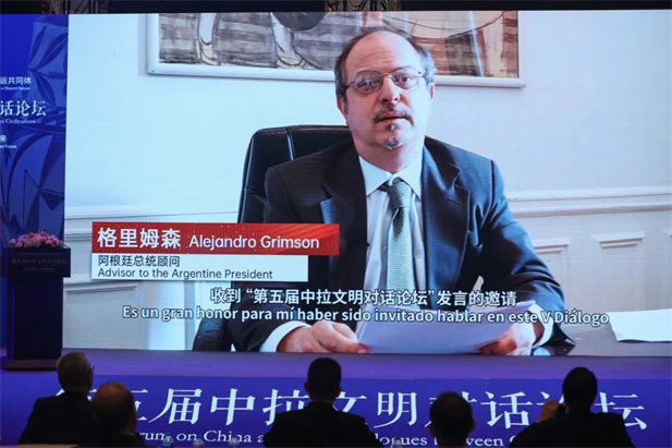 Cai Wei, director general del Departamento de América Latina y el Caribe del Ministerio de Relaciones Exteriores de China; Yu Yunquan, director del Instituto de China Contemporánea y el Mundo; Alejandro Grimson, asesor de la Presidencia de Argentina, y otros invitados pronunciaron discursos en la ceremonia de apertura en los que afirmaron el importante papel del V Diálogo entre las Civilizaciones de China y América Latina-Caribe, y expresaron su gran esperanza en el desarrollo de alta velocidad y alta calidad entre China y ALC en el futuro.