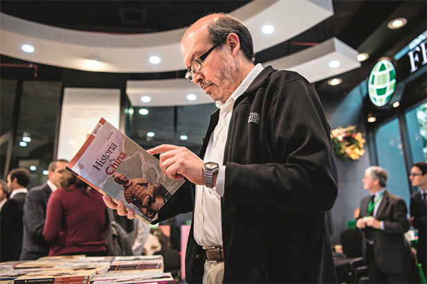 23 de noviembre de 2016. Un lector chileno hojea un libro en el “Mes de Presentación y Venta de Libros Temáticos sobre China” en Santiago, capital de Chile. Fotos de Xinhua