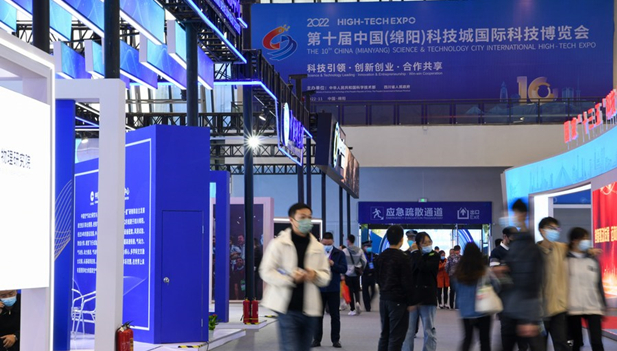 16 de noviembre de 2022. Visitantes recorren la 10ª Exposición Internacional de Alta Tecnología de la Ciudad de Ciencia y Tecnología de China, en Mianyang, ciudad de la provincia suroccidental china de Sichuan. Fotos de Xinhua