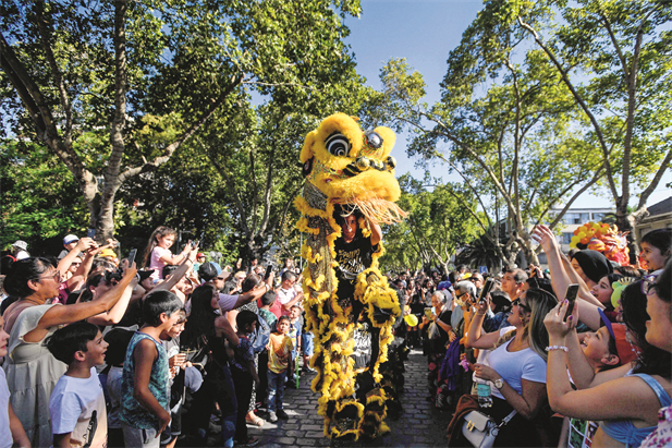 14 de enero de 2023. Representación de la danza del león con motivo de la Fiesta de la Primavera, en Santiago, Chile. Fotos de Xinhua