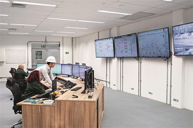 30 de septiembre de 2022. Xu Hongfei (al centro), responsable de operación y mantenimiento de estaciones convertidoras de la empresa State Grid Brazil Holding, filial de State Grid Corporation of China, en la estación convertidora en Río de Janeiro, Brasil. Fotos de Xinhua