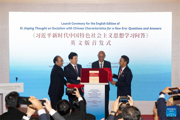 La ceremonia de presentación de la edición en inglés de "El pensamiento de Xi Jinping sobre el socialismo con peculiaridades chinas de la nueva era: preguntas y respuestas" se celebró el sábado, durante un evento de China como país invitado de honor en la 40ª Feria Internacional del Libro de Kuala Lumpur.