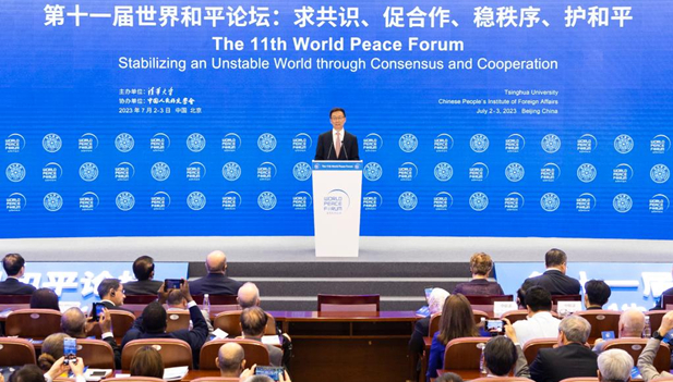 El vicepresidente de China, Han Zheng, pronunció un discurso el domingo en la ceremonia de apertura del XI Foro Mundial de Paz en la Universidad Tsinghua, en Beijing, e hizo un llamado a todas las partes para salvaguardar la paz y la seguridad mundiales.