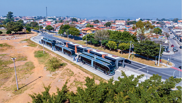 12 de julio de 2023. Autobuses 100 por ciento eléctricos de la marca BYD en la estación de salida de la Línea Verde, el principal proyecto de movilidad urbana en la ciudad de Sao José dos Campos, en el estado de Sao Paulo, en Brasil. Xinhua