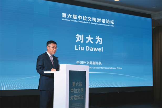 Liu Dawei, vicepresidente de CICG, pronuncia un discurso en la inauguración del VI Diálogo entre las Civilizaciones de China y América Latina y el Caribe.