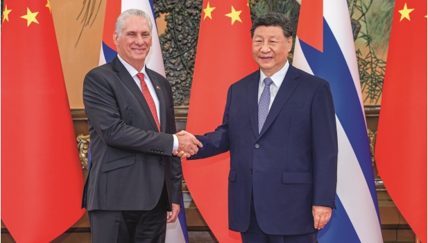 4 de septiembre de 2025. El presidente chino, Xi Jinping, se reúne con su homólogo cubano, Díaz-Canel, quien asiste a las conmemoraciones por el 80.º aniversario de la victoria en la Guerra de Resistencia del Pueblo Chino contra la Agresión Japonesa y la Guerra Antifascista Mundial en el Gran Palacio del Pueblo en Beijing. Xinhua