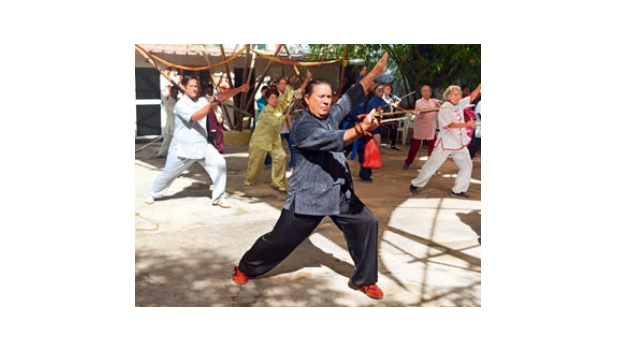 Vargas Lee guía a estudiantes de edad avanzada. EN la Cuba de 1995 resultaba casi utópica la idea de tener una entidad educacional que aglomerara las vastas variantes del wushu chino. Pero para Roberto Vargas Lee, maestro de wushu, el cual combina movimientos y posturas de las artes marciales tradicionales chinas, lo imposible se convirtió en un desafío que asumió con gran convicción y con una idea en mente: llevar las artes marciales chinas a todos los rincones de Cuba e incluso más allá. Hoy, 30 años después de fundar la Escuela Cubana de Wushu y Qiqong, Vargas Lee recibe a la revista China Hoy en su sede en La Habana, convertido ya -sin lugar a dudas- en el rostro más reconocible de dicha disciplina en la isla, pero con la misma ilusión de aquel joven que una vez se atrevió a soñar más allá de los límites y lo preestablecido. China Hoy (CH): Maestro, en octubre de este año la Escuela Cubana de Wushu cumple 30 años desde su establecimiento. ¿Cuáles han sido los principales retos para mantener su esencia estas tres décadas? Roberto Vargas Lee (RVL): Creo que ha habido muchos retos, por supuesto, han sido 30 años. El principal reto es la cultura. Nosotros quisimos hacer una escuela auténtica desde el punto de vista cultural. Por lo tanto, trabajé con el fin de traer un pedacito de China para acá. Por ejemplo, nuestras clases son uniformadas. Sabrás que en China tuve un grupo de taijiquan, pero no tan uniformado. Hay quienes lo practican como hobby, pero nosotros quisimos hacer una escuela auténtica desde el punto de vista cultural. Por lo tanto, desde que llegué incorporamos el uniforme y después el uso del idioma chino en función de la clase. Por ejemplo, yo hago el conteo -yi, er, san (un, dos, tres)- y los saludos en chino. Logramos incorporar en la escuela el himno de China y Cuba todas las mañanas, izando sus respectivas banderas, para lo cual tuvimos que pedir permiso a la Embajada. Hasta donde sé, es el único lugar donde hay una bandera china fuera de la Embajada. Un reto grande era mantener viva la cultura china sin chinos, porque tenemos un barrio chino sin chinos. Sin embargo, la cultura china continúa presente. Existe la Danza del León, la del Dragón y los cubanos cantan en chino, etc. De este modo, logramos cumplir el reto de incorporar no solo los movimientos físicos, sino la cultura china a lo largo de estos últimos 30 años.