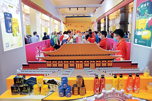 10 de octubre de 2020. El público se siente atraído por productos chinos bien empaquetados en la Exposición de Marcas de Honor de China 2020, celebrada en Shanghai.